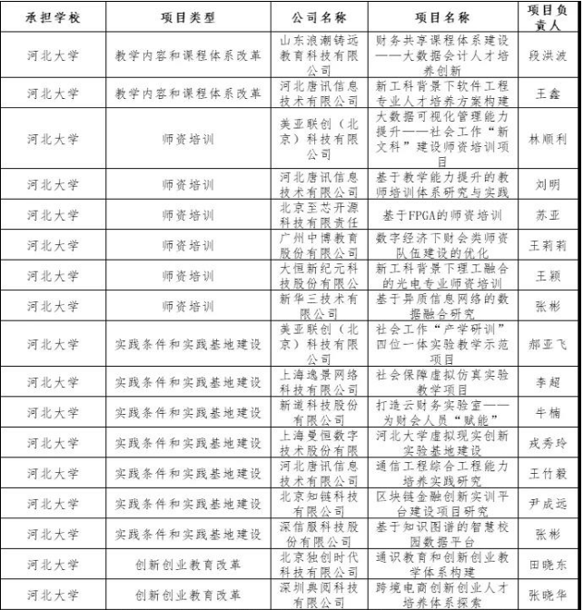 2020年产学合作协同育人项目立项名单(河北大学)