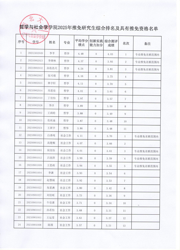 根据《河北大学推荐优秀应届本科毕业生免试攻读硕士学位研究生工作实施办法》(校教字〔2024〕4号)、《关于做好河北大学2025年推荐优秀应届本科毕业生免试攻读研究生工作的通知》和《哲学与社会学看球比分
