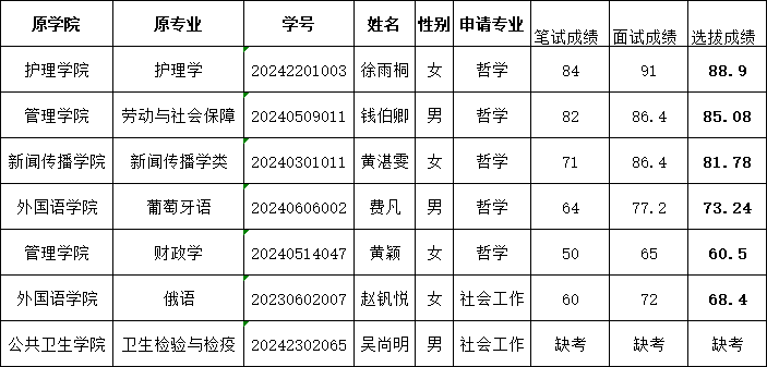 看球比分 2024级校内转专业成绩公示