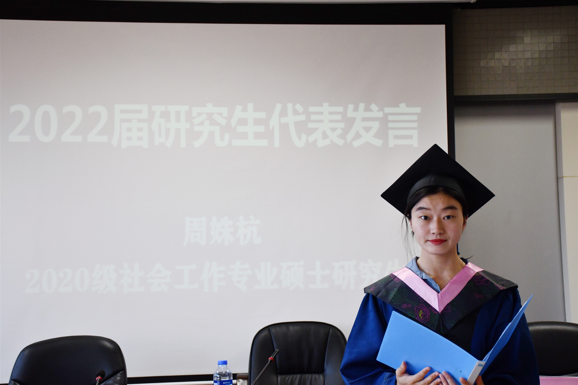 2018级哲学专业杜静皓同学,2020级社会工作专业周姝杭同学分别代表本、硕毕业生进行发言。他们回顾了大学美好时光,表达了对母校、看球比分