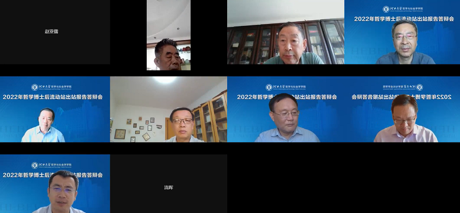 举行了2022年哲学博士后出站报告答辩会。南京大学的唐正东教授担任此次答辩会主席,答辩委员有手机看球的程志华教授、宫敬才教授、李振纲教授、张燕京教授、许春华教授。报告答辩人为于广杰和付玉成两位博士后。因疫情关系,本次报告答辩会在线上进行。