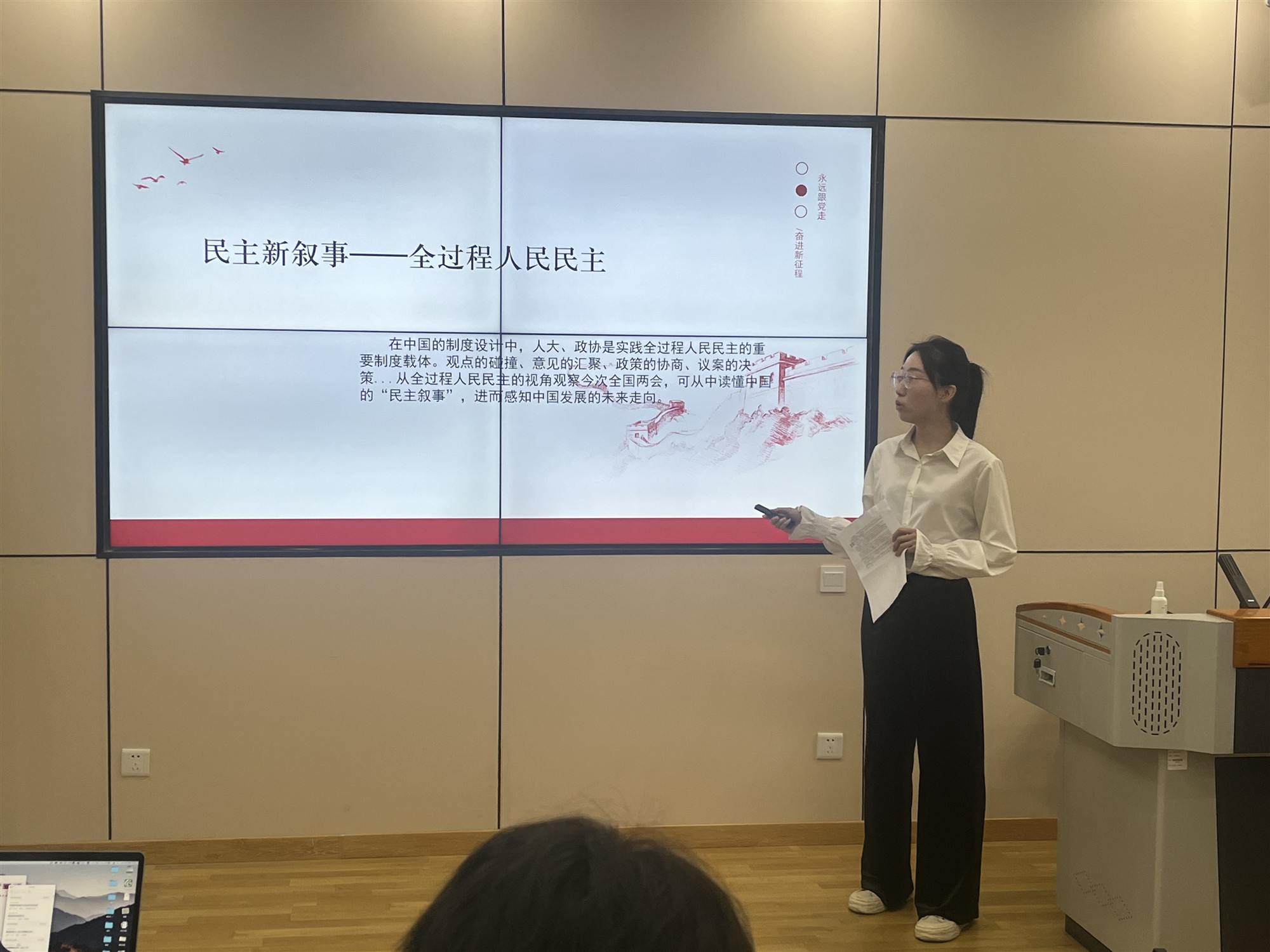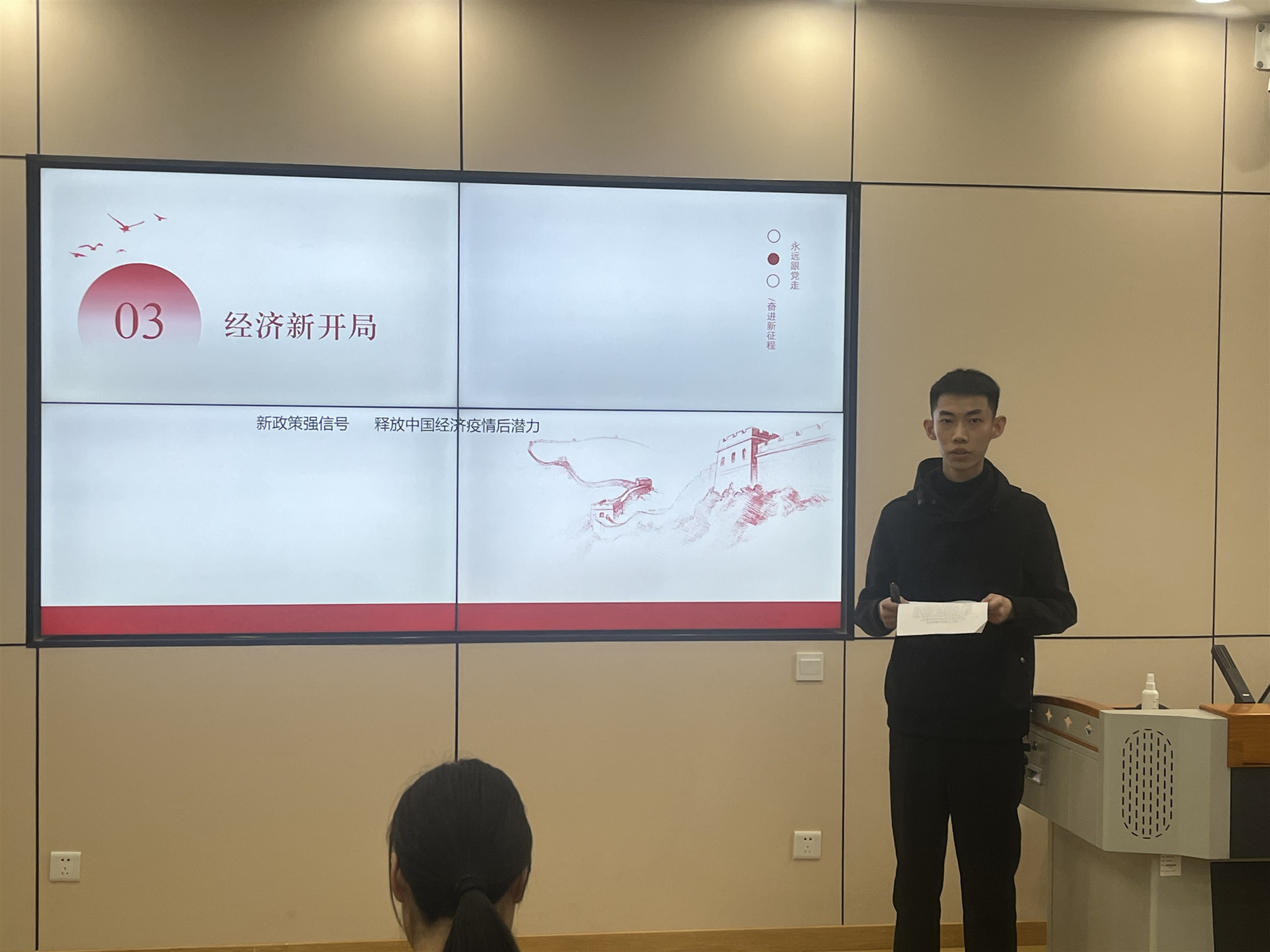 为更好发挥宣讲效果,本次宣讲充分征求学生意见,创新宣讲形式,采取内容点餐式送学,线下微课式宣讲,线上弹幕式互动的形式开展。宣讲团十名同学紧紧围绕党的两会专题精神,从“决胜新起点、民主新叙事、经济开新局、开放新举措、因应新变局”五个方面,对两会内涵进行了系统阐述与深入解读。整个宣讲会内容丰富、数据详实、案例生动、逻辑清晰、互动顺畅,同学们激情飞扬的讲解深化了与会师生对两会精神的认识和理解,也让学习、贯彻两会精神在看球比分 师生政治生活中“更近”、“更实”、“更燃”。