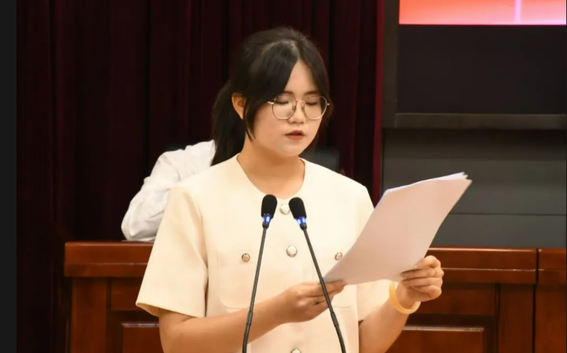 在校生代表 ,2023 级哲学专业博士生朱君鸿与新生共勉,要不忘初心、砥砺奋进,厚植家国情怀、涵养进取品格,以奋斗姿态激扬青春,不负时代,不负华年。