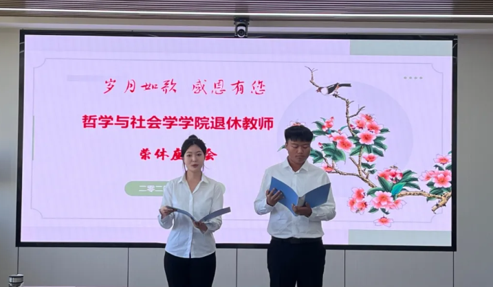 会上,播放了毕业生代表录制的视频,为退休教师送上祝福。在校生献上诗朗诵《致退休老教师:哲学与社会学的智慧启迪》,对退休教师表达敬意。