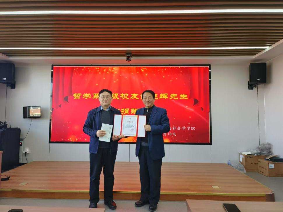 2024年12月13日,哲学系79级校友董晓辉先生图书捐赠仪式在我院学术报告厅举行。本次捐赠的图书《诸子<易经>经论》是其多年研究的重要成果,具有一定的学术和收藏价值,为我院学术研究提供了宝贵资料。