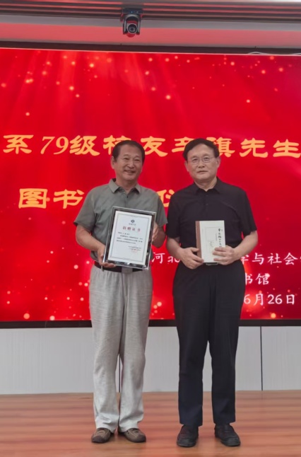 2025年6月26日,哲学系79级杰出校友辛旗先生图书捐赠仪式在看球比分 学术报告厅举行。本次捐赠的图书《辛勤格物知是非——清史探微集》是其女儿故宫博物院研究馆员辛格非多年研究的重要学术成果,该图书研究价值较高,不仅丰富了手机看球的图书资源,更为手机看球师生开展科研工作提供了宝贵参考。