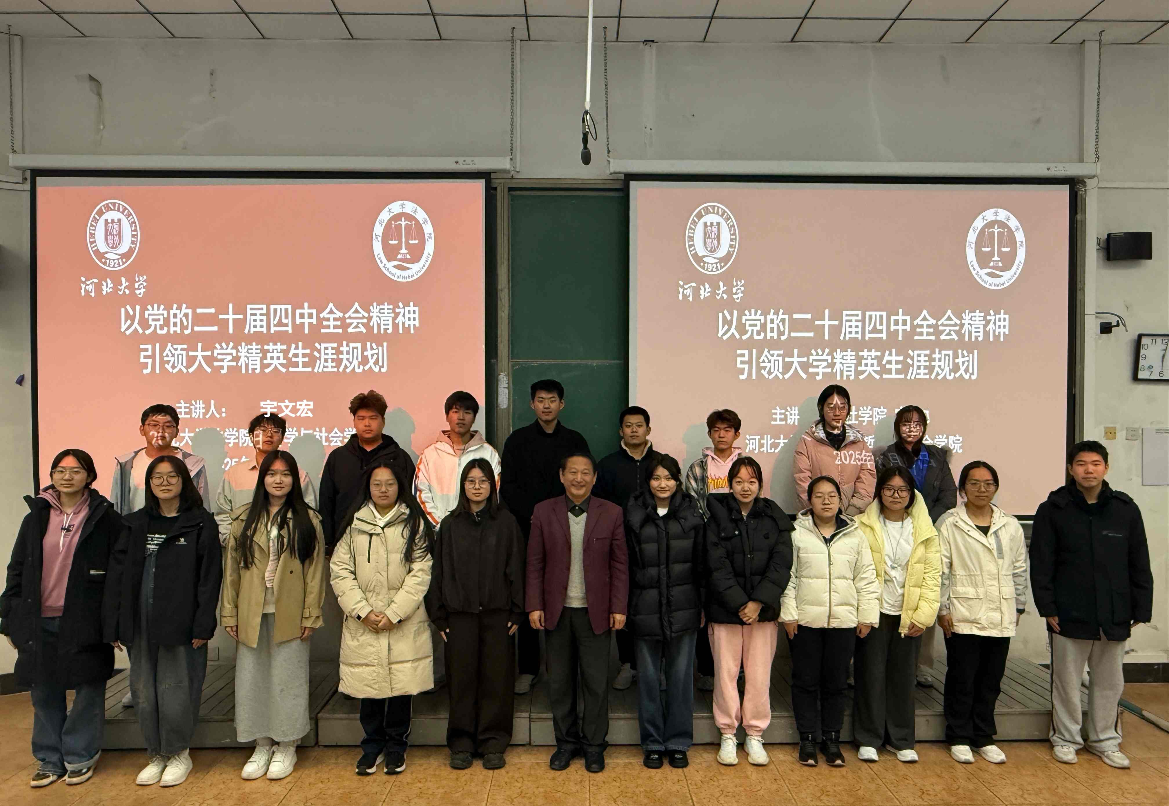 在A2二阶报告厅联合举办了主题为“用党的二十届四中全会精神引领大学精英生涯规划”的新生素质提升大讲堂。活动特邀河北大学老教授协会、关心下一代工作委员会常委,河北省思想政治教育研究专家、硕士生导师宇文宏教授作专题报告。两看球比分