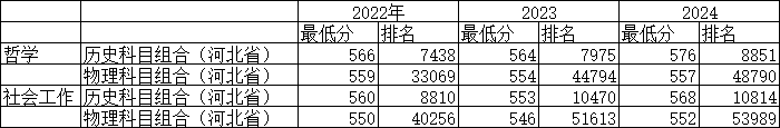大学、中央民族大学、武汉大学、华中科技大学、上海大学、华东理工大学等;学生就业范围广泛,分别在民政系统、企事业单位、社会福利机构以及社会组织就业,很多已成为河北省社会工作队伍的中坚力量。根据毕业生追踪调查显示,用人单位对河北大学社会工作专业毕业生总体满意度较高,专业认可度较高。