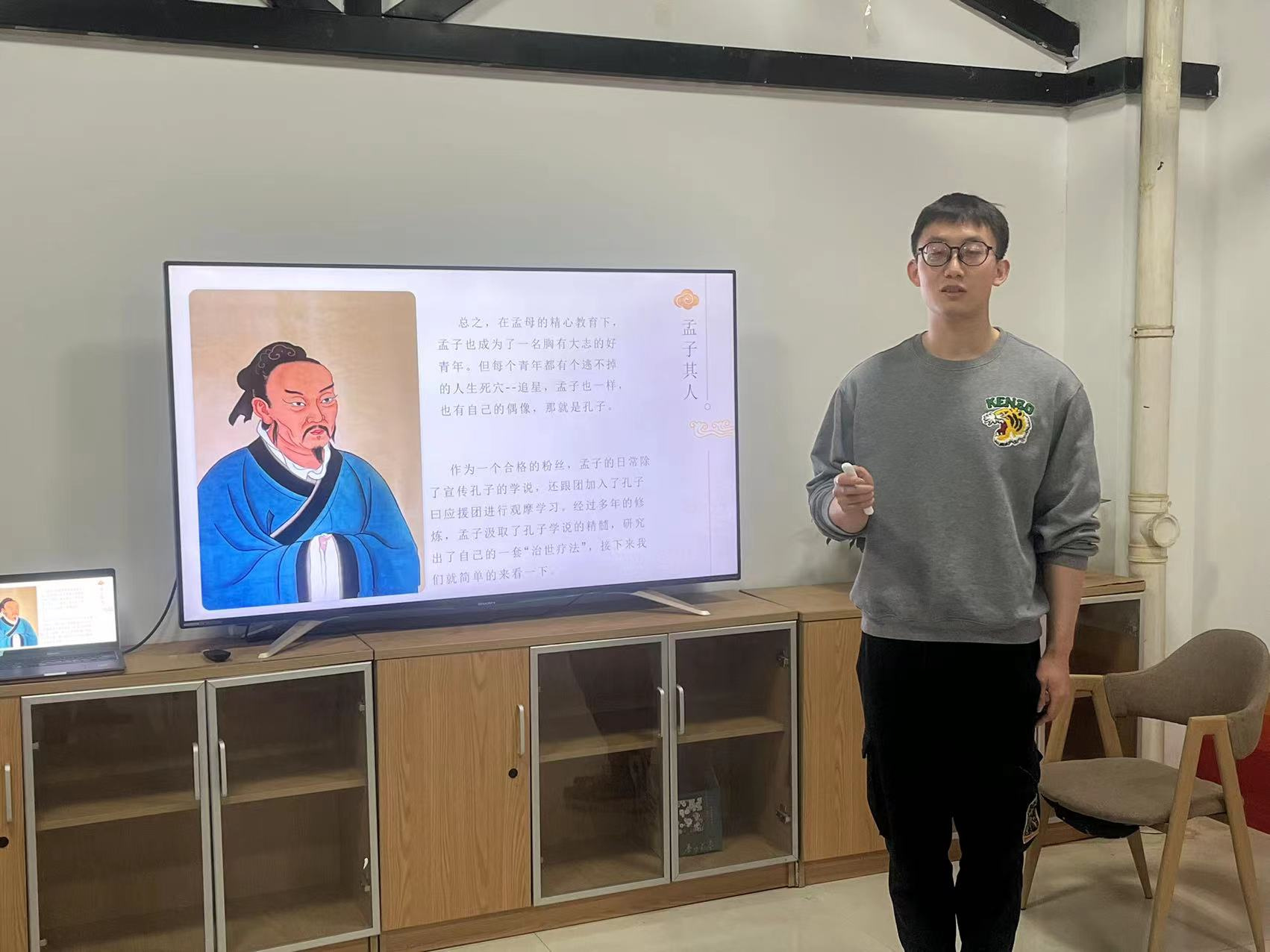 王子敬同学从孟母三迁、孟母断机等脍炙人口的小故事入手,讲解了孟子的成长经历,着重介绍了孟子“人性本善”“舍生取义”“仁政思想”,及孟子思想的现代意义。