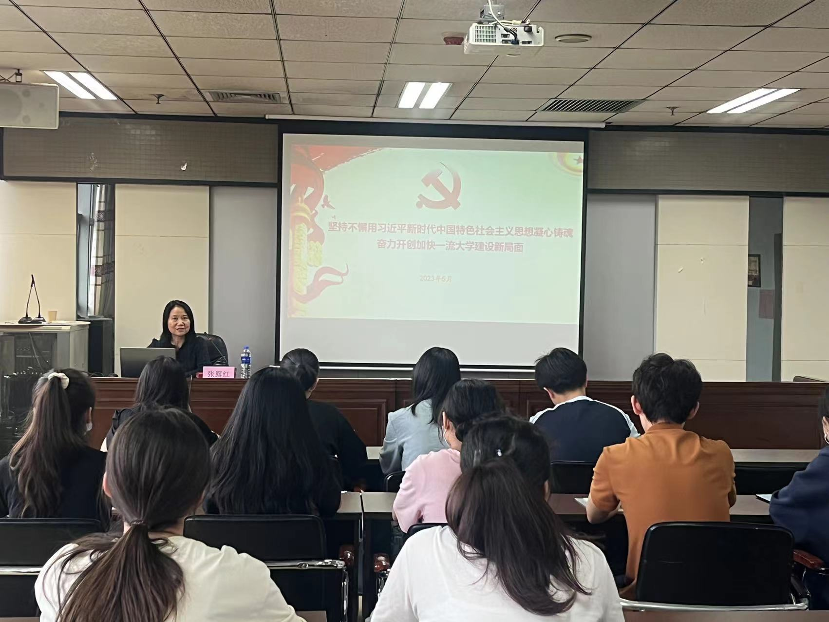 张露红作了题为“深入学习贯彻习近平新时代中国特色社会主义思想,奋力书写一流大学建设新篇章”的报告。张露红指出同学们要全面深入学习贯彻习近平新时代中国特色社会主义思想,深刻领悟“两个确立”的决定性意义,增强“四个意识”,坚定“四个自信”,做到“两个维护”,矢志不渝听党话、跟党走;要把开展主题教育与落实“深学争优、敢为争先、实干争效”行动相结合,结合看球比分