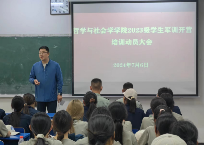 王昭强调,军训的目的是通过严格的军事训练提高同学们的政治觉悟,激发爱国热情,发扬革命英雄主义精神,培养艰苦奋斗,吃苦耐劳的坚强毅力和集体主义精神,增强国防观念和组织纪律性,掌握基本军事知识和技能,养成良好的学风和生活作风。他号召同学们筑牢思想根基、融入军训磨砺、模拟军营场景、培塑战斗精神,在军训中激扬青春,淬炼成钢。军训教官详细布置军训安排,讲解军训中的注意事项,明确纪律要求。